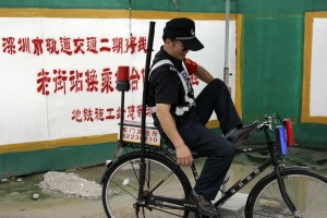 2010年,深圳市轨道交通二期3号线老街站在建设中。一位东门派出所的巡逻警察正在骑着他的自行车在执勤中。