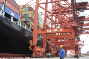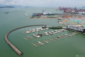 2017年深圳市南山区南集装箱码头。蛇口集装箱码头成立于1989年,是深圳市专业化集装箱码头,也是中国首家中外合资码头。码头现有可靠泊第六代集装箱大船专用泊位九个,年处理能力可达650万TEU。