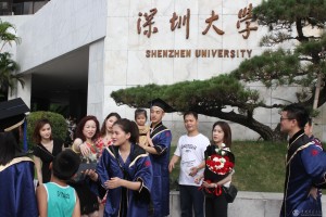 2017年,深圳大学校园内正迎来毕业季,毕业生们带着父母在拍摄毕业照,场面热闹非凡。