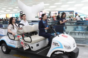 2017年,深圳市国际机场,旅客可以轻松自如地乘坐电瓶车穿梭在机场候机楼内。在他们的眼前写着“人工智能是一种生产力,引领我们连接智能未来。”这就是今天的深圳。