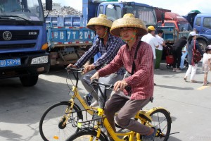 )2018年,深圳市南山区渔港码头,两位现代的渔业青年骑着共享单车在码头里穿行。这里正在进行一场搬迁改造。