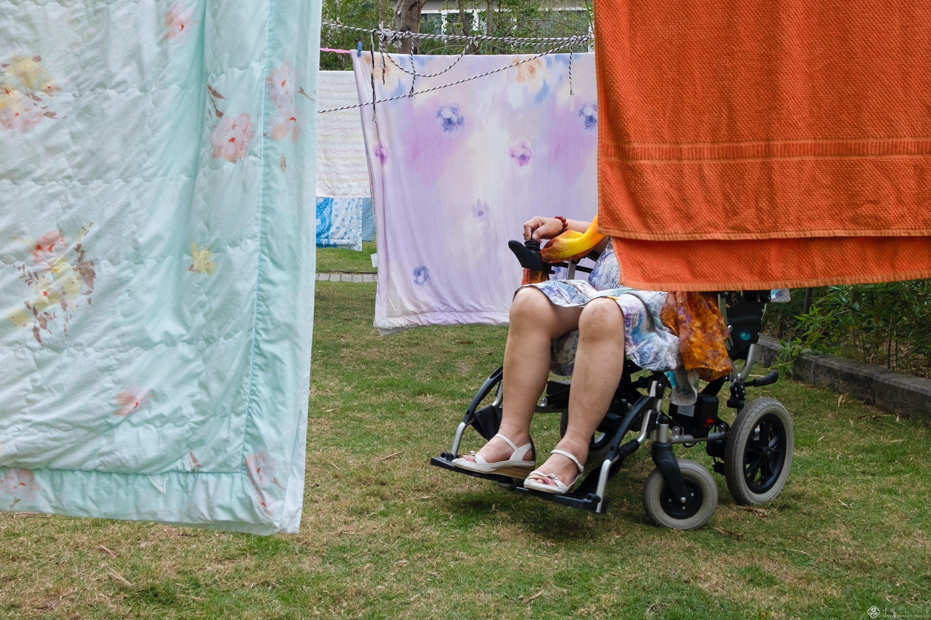 春天里,轮椅上的母亲想象自己的身体能轻盈的飞翔。
