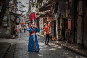 楚剧是湖北主要的地方戏曲剧种之一,也是国家级非物质文化遗产。武汉市洪山区楚剧团成立于上世纪八十年代,是一个非常小的剧团。演员只有十来人,是一个松散的戏班子。随着老城区的拆迁,剧团的演出也越来越少。面临人员老化、经济困难、后继乏人等诸多困难。他们还能坚持多久……图为演员李新柱在老街。