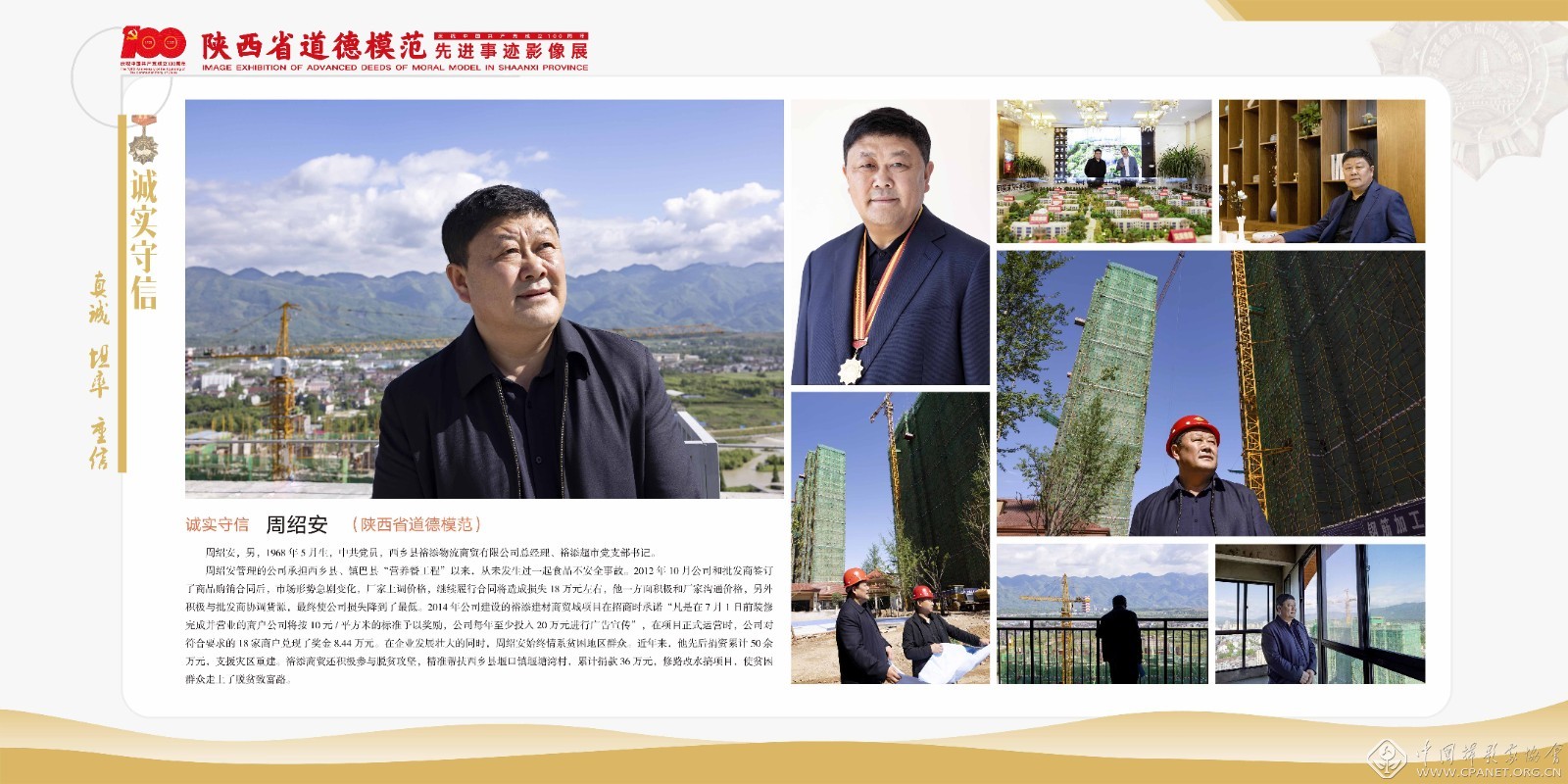 由中共陕西省委宣传部、中共陕西省委文明办、陕西省文学艺术界联合会主办,陕西省摄影家协会承办的“庆祝中国共产党成立100周年陕西省道德模范先进事迹影像展”,收录了100位道德模范的先进事迹,用镜头聚焦道德模范的工作和生活,讲述模范感人故事,展示榜样风采,弘扬真善美、传播正能量,教育广大干部群众崇德向善、见贤思齐,引导全社会积善成德、明德惟馨,为奋力谱写陕西新时代追赶超越新篇章凝聚磅礴精神力量和坚强道德支撑。
