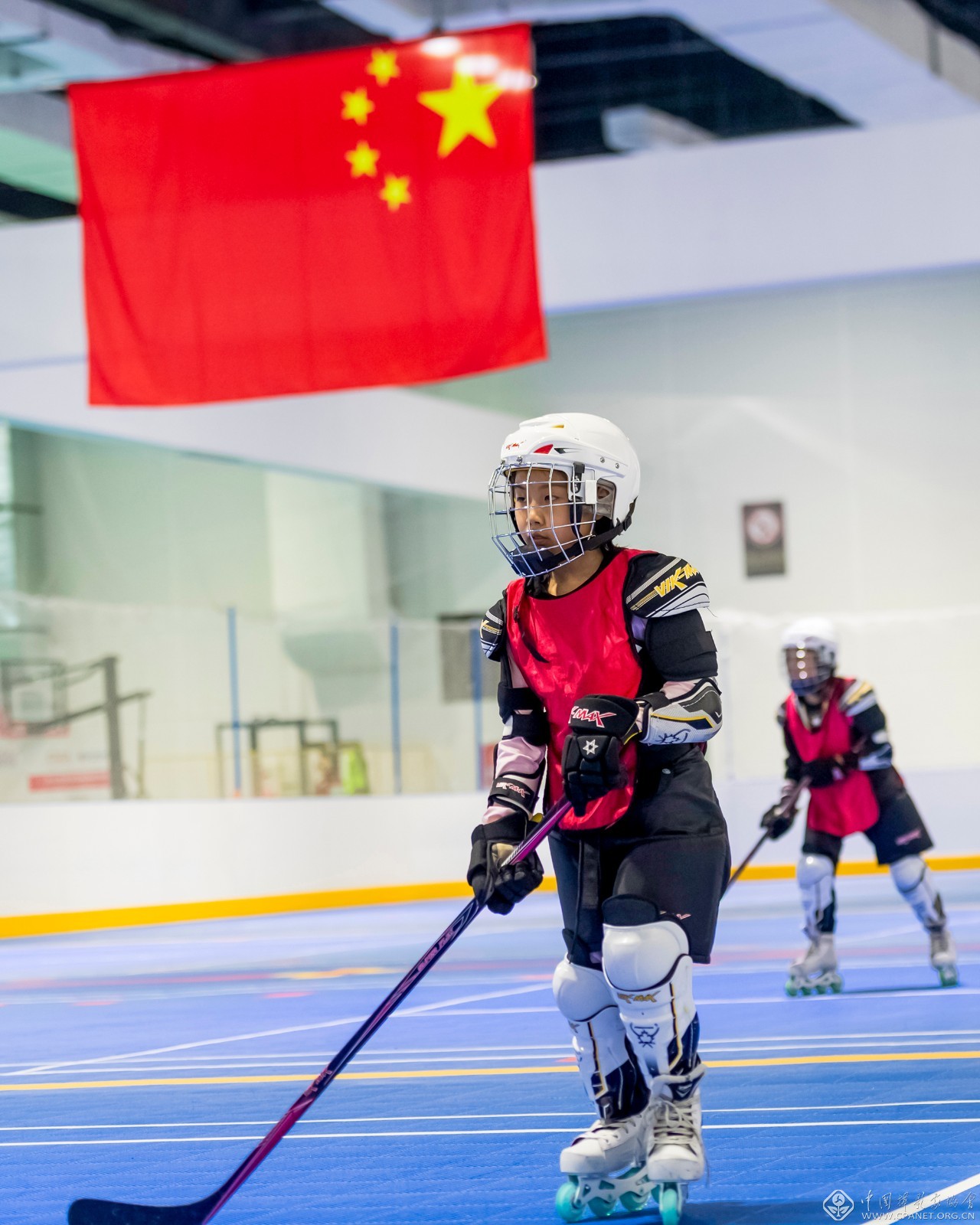 照片拍摄于唐山文旅体育综合运动馆,少年们正在进行陆地冰球训练。