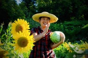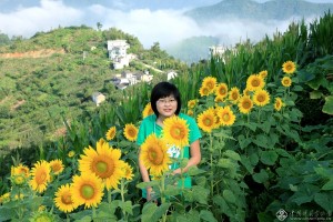 2010年8月,已经上初二年级的吴苗,放暑假在自家向日葵花海中拍照留影。