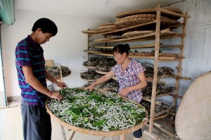 2011年7月,进入夏季,石潭山村家家户户养蚕,吴惠娣老公吴跃华特地从外地赶回来帮忙。