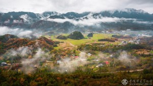《晨雾绕空山》(2021年11月5日,四川省巴中市通江县)(初冬的空山镇,被一层薄纱一样的晨雾缠绕着,起伏的山峦呈现出秋天的美景。)作者:谭燕