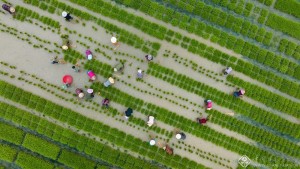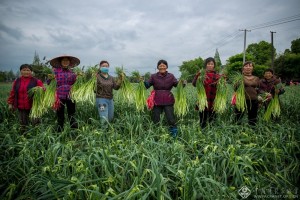 《蒜苔丰收季》(2022年3月21日,四川省成都市温江区永宁镇杏林社区七组)(蒜农们在一片田间采收蒜苔。)作者:叶凡山