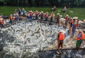 《起网》(2022年7月28日,江西省新余市)(江西新余的仙女湖水质良好、渔业资源丰富,每年有500多万斤有机鱼远销广东、浙江、江苏、上海、重庆等全国多个省市。)作者:魏宏