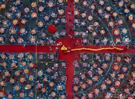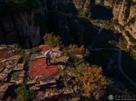 《晒秋》(2021年10月22日,河南省林州市)(太行山的农户在崖壁晒山楂。)作者:王奎