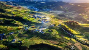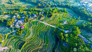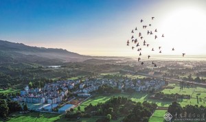 《吉祥鸟光临幸福村》(2022年5月10日,四川省雅安市天全县仁义镇桐林村)(天全县仁义镇桐林村种植香谷米,大力发展传统农业,走上了致富之路。)作者:张文思