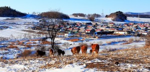《雪野暮归》(2021年12月4日,黑龙江省牡丹江市东宁市新曙光村) (冰天雪地也是金山银山,每天村民们养殖的肉牛在雪地里“会餐”后,结伴返回各自家中。)作者:秦玉强
