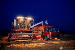 《夜战》(2022年6月11日,山东省潍坊市高密市大牟家镇)(麦收时节,高密市大牟家镇人机昼夜奋战,抢收小麦。)作者:李延明