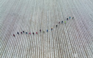《大地音符》(2022年1月3日,四川省达州市渠县二郎村)(规模化生产是现代科技农业发展趋势,图为村民在管护萝卜苗。)作者:陈清英