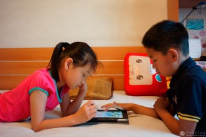 2013年6月1日,雯雯和其他孩子一样最爱玩的就是平板电脑。