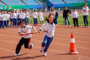 2014年4月30日,在小学校运动会上,参加四年级双人推磨接力赛。