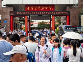 2019年6月11日,中考第一天下午,雯雯开心地走出山东省实验中学考场。