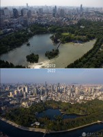 2022年秋,摄影师吴芳用无人机,准备以十年前相同的视角航拍合肥,他惊讶地发现每天都是拍照的好天气,每一个角度拍摄,都是现代化大都市的模样。