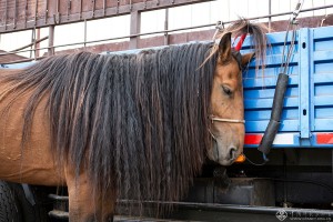 刚刚“坐车”的马,下车时很紧张,只要跳下去。拍摄于2013年 6月16日。