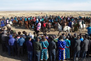 那达慕,观众围着观察赛马,拍摄于2014年 3月1日。