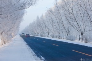 看冰雪景观,不必刻意寻找任何景点,在大东北的冬天,只要适宜的天气,广袤大地上,到处都是冰雪景观,尤其以公路两侧的树木构成的雪凇、雾凇冰雪景观最令人为之震撼。