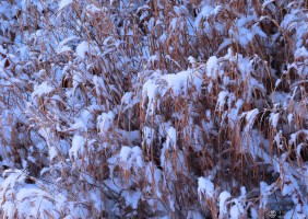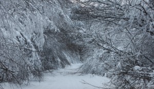 (五)公路两傍,挂满雾凇、雪凇的细枝和小草相互依偎,充满着一种拟人化的甜蜜。有的树枝高傲地昂首张杨,也有洋溢着一种愉悦的甜美,在特殊的环境里,也有被折断或者是被积雪压成弯弓的小生命,,它们流露出某种历练的苦涩。这是通感中的味觉向精神和社会延伸的艺术感觉。