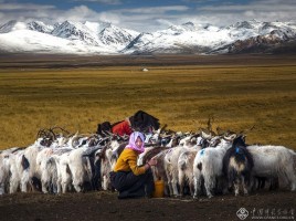 挤羊奶的藏族姑娘Xizang Girl Milking a Sheep 刘强/中国辽宁Liu Qiang / Liaoning, China