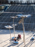杨越峦-雄安高铁站荷花造型的不锈钢,吸引百姓拍照留念。
