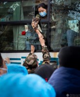 邓锦玺-2020年2月1日,白求恩国际和平医院68名队员出发奔赴武汉,当护士赵颖手捧丈夫送的花束上车,大巴车缓缓开动时,同为军人的丈夫李广亚小跑几步又把一枝玫瑰举向妻子,然后向着驶离的车队敬了一个军礼。