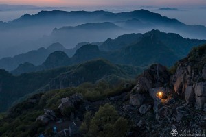 李渤-夜晚,在阜平县神仙山顶,东风林场护林员段金龙居住的石屋亮着灯光。