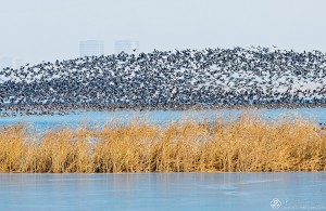 任振潮-万鸟腾飞的壮观景象,展现在冬日里的衡水湖畔。