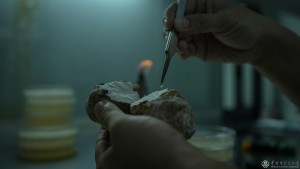 2023年3月27日,科技人员在无菌条件下从菌核中分离纯化菌种,确保菌种不被污染。