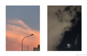 左:傍晚天空娇红。右:月亮静悄悄。
