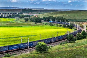 2020年8月24日,行驶在内蒙古乌兰察布草原上的中欧班列。