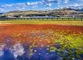 2020年9月21日,京呼(北京—呼和浩特)高铁开通后带动了当地旅游业的经济发展。一高铁动车行驶在内蒙古兴和县小淖尔草原湿地。
