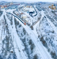 2022年3月18日,雪后的内蒙古集宁站站场,一列中欧班列正在编组。