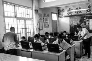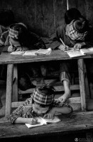 1984年10月,黔东南州施秉县马号镇平扒村苗寨学堂里,孩子们做作业。