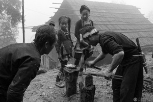 1995年9月,黔东南州从江县丙妹镇岜沙村,铁匠正在打马掌。