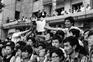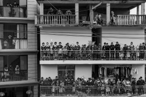 1983年5月,贵阳市云岩区中华北路,群众抢占有利地形观看农历四月八民俗表演。