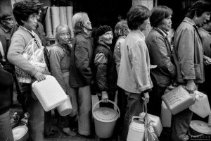 1989年10月,贵阳市云岩区中华中路,市民排队抢购酱油。