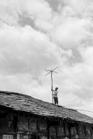 1989年 8月,贵阳市花溪区石板镇李村,一男子调试电视天线。
