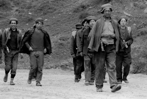 1997年11月,贵阳市花溪区九安乡九安村,下班途中的矿工们。