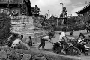 2021年12月12日 黔东南州从江县丙妹镇大歹村,一群玩耍的孩子。