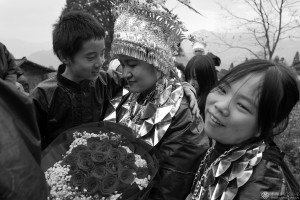 2023年1月11日, 黔东南州剑河县南寨镇展留村,一女子在弟弟、妹妹的簇拥下盛装出嫁。