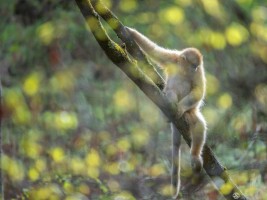 秦岭金丝猴喝水非常的优雅,河水清澈到连金丝猴的倒影都那么清楚。