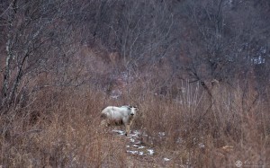 一只独牛在啃食一些含油脂的针叶树皮和苔藓植物,以维持身体所需的基本能量。有时,落单迷路的羚牛还会下山,来到村庄农田觅食。