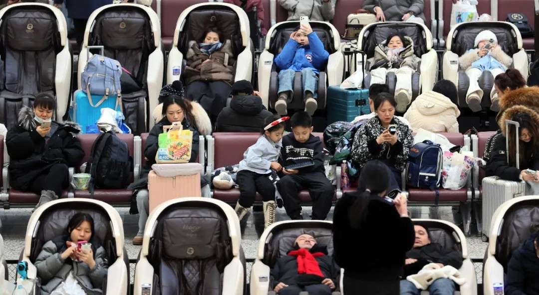 2月2日,哈尔滨站,旅客们在候车室等候乘车。 张澍 摄