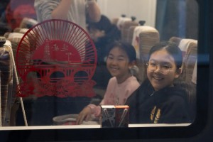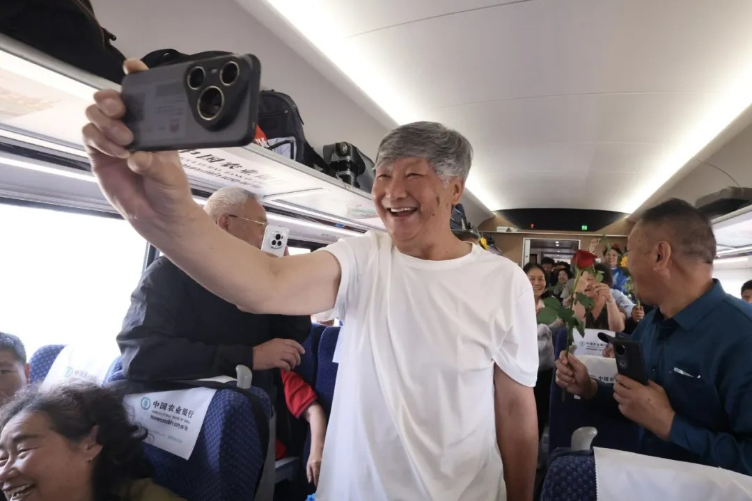 2月4日,“一路欢歌一路情”中老铁路春节文化主题活动在列车上举行。这是乘客用手机记录下美好瞬间。周灿 摄