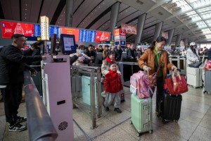2月2日,北京南站出发层,旅客在检票口准备进站乘车。张武军 摄